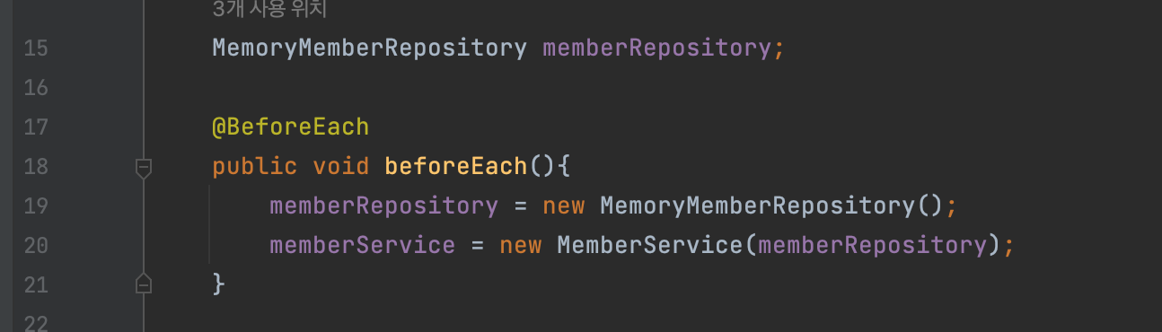 @BeforeEach를 사용해서 작성